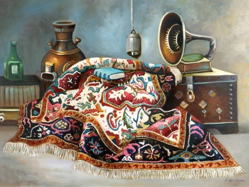 HALI. TUAL ÜZERİ YAĞLIBOYA. İMZALI. 70X100 CM.