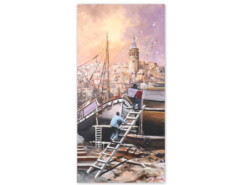 TERSANE. TUAL ÜZERİ YAĞLIBOYA. İMZALI. 120X60 CM.