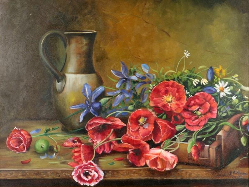NATÜRMORT. TUAL ÜZERİ YAĞLIBOYA. İMZALI. 2017 T. 60X80 CM.