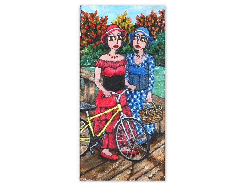 BİSİKLETLİ FİGÜRLER. TUAL ÜZERİ YAĞLIBOYA. İMZALI. 2020 T. 40X20 CM.