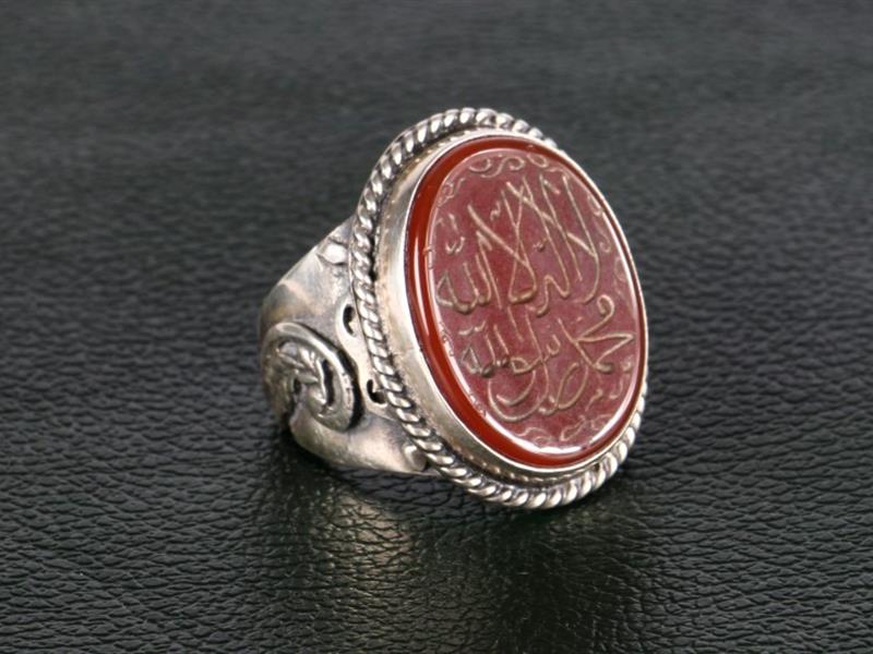 925 AYAR GÜMÜŞ DAMGALI. AKİK ÜZERİ KELİME-İ TEVHİD YAZILI. TOPLAM AĞIRLIK 15 GR. AKİK ÖLÇÜ 25X18 CM.