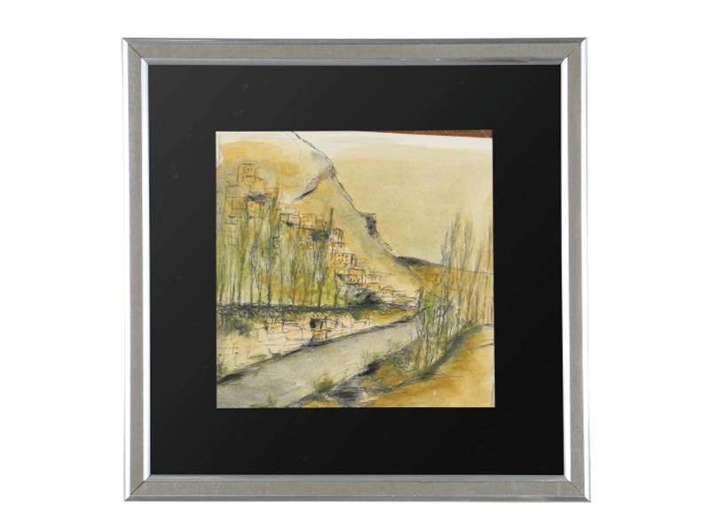 EVLER. KAĞIT ÜZERİ SULUBOYA. İMZALI. 20X20 CM.