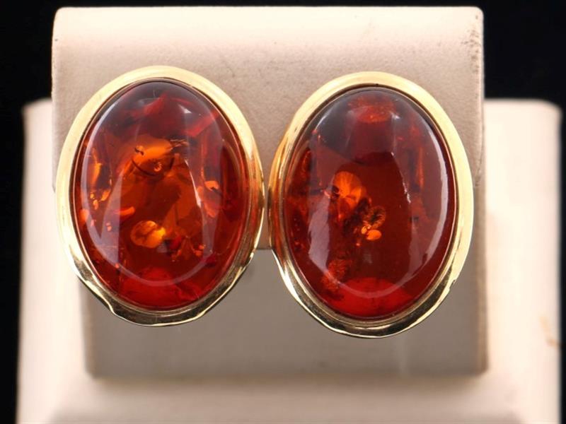 14 K ALTIN. ORTALAR KEHRİBAR. TOPLAM AĞRILIK 5,29 GR. KEHRİBAR ÖLÇÜ 18X15 MM.