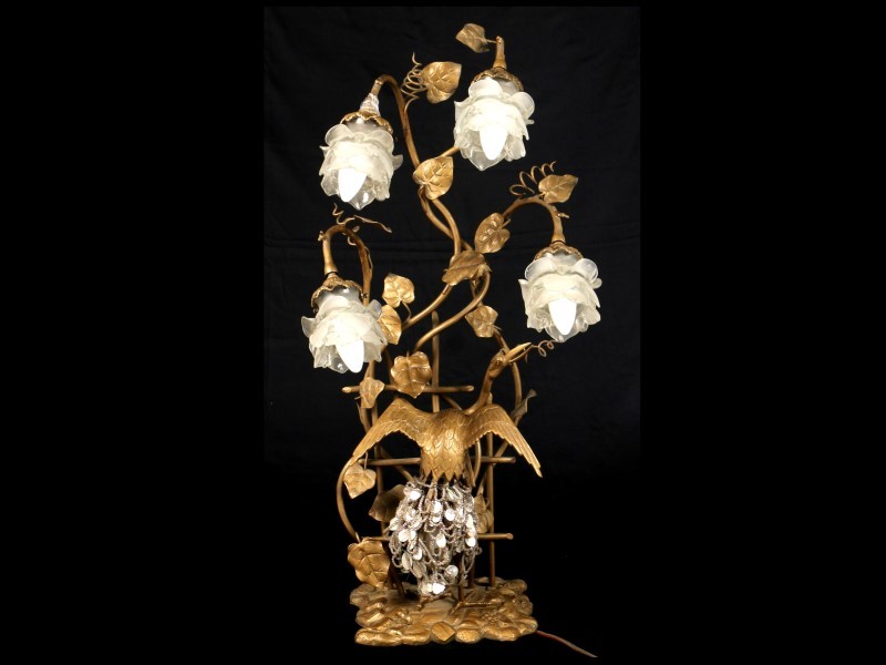 ART DECO. YAPRAKLARLA DEKORLANMIŞ DALLAR ARASINDANDA TAVUS KUŞU FİGÜRLÜ. 5 LAMBALI. H 83 CM.