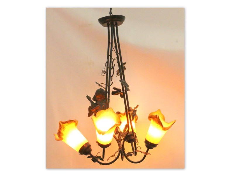 4 KOLLU, 4 LAMBALI. ÜZÜM SALKIMI MOTİFLERİ İLE DEKORLU. MELEK APLİKELİ. H 90 CM.