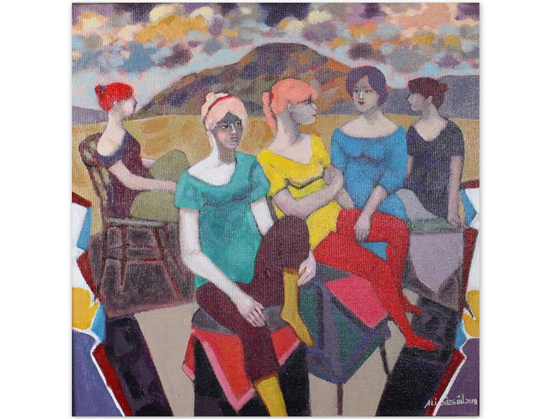 FİGÜRLER. TUAL ÜZERİ YAĞLIBOYA. İMZALI. 2018 T. 40X40 CM.