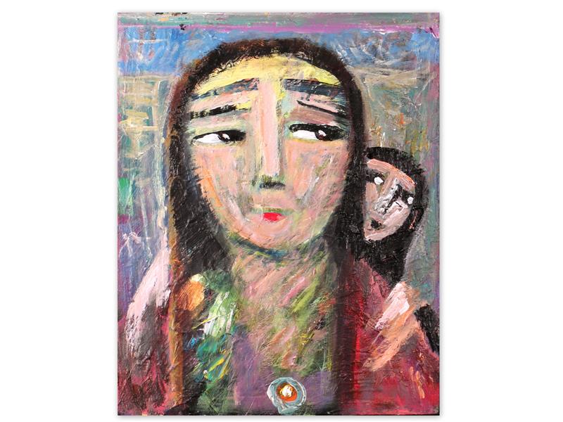 KÖYLÜ KIZI. TUAL ÜZERİ YAĞLIBOYA. İMZALI. 70X50 CM.