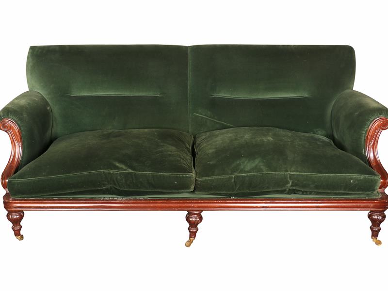 İNGİLİZ. YEŞİL KADİFE KUMAŞ KAPLI. ÖN AYAKLAR TEKERLEKLİ.