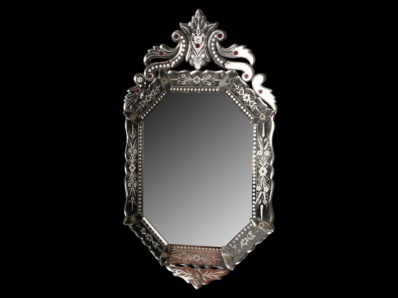 DİKDÖRTGEN FORMLU. TAÇ KISMI VE KENARLAR PARÇA AYNALARLA BÜTÜNLEŞMİŞ. 108X62 CM.