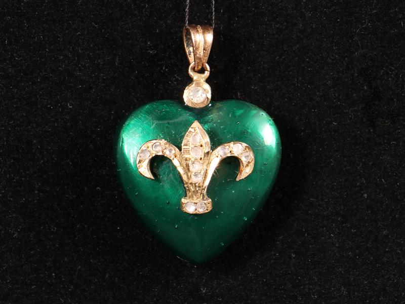 ANAYAR. KALP FORMLU. OYMA MAŞALLAH YAZISI APLİKELİ. TAKRİBİ 0,15 CT. ELMAS. MİNE İŞÇİLİKLİ.