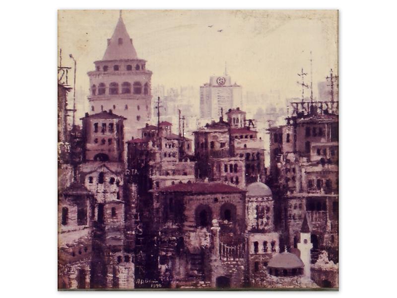 BEYOĞLU'NDAN GÖRÜNÜM. ALİ DEMİR REPRODÜKSİYON ÇALIŞMA. ARKA DA İMZALI.1990 T. SINIRLI SAYIDA. 227/300. 20X20 CM.