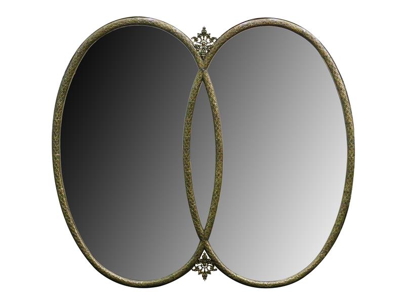 OVAL FORMLU. ÇERÇEVE KABARTMA İŞÇİLİKLİ. ÜSTTE VE ALTTA OYMA MOTİFLERLE DEKORLU. ÜÇ BÖLÜMLÜ AYNALI. 160X144 CM.