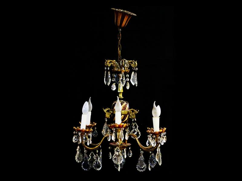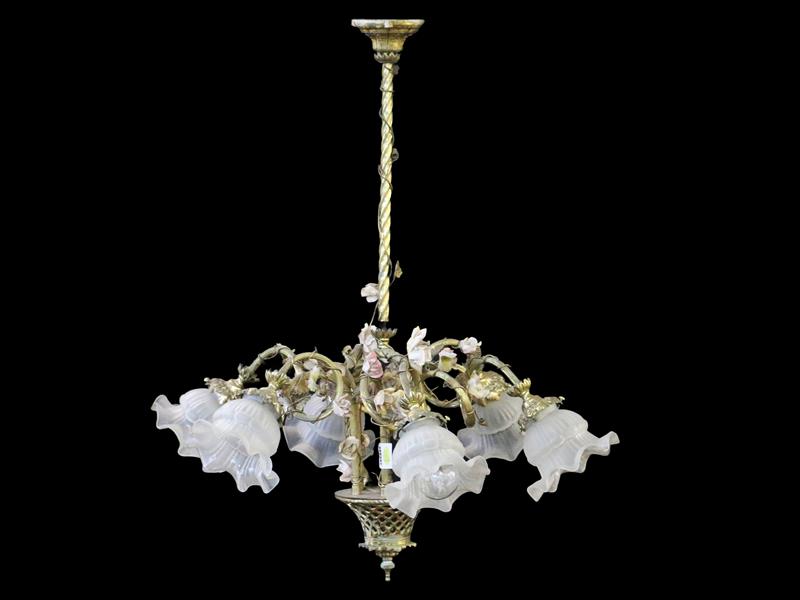 6 KOLLU, 6 LAMBALI. KOL ÜZERİ PORSELEN GÜLLERLE DEKORLU. H 78 CM.