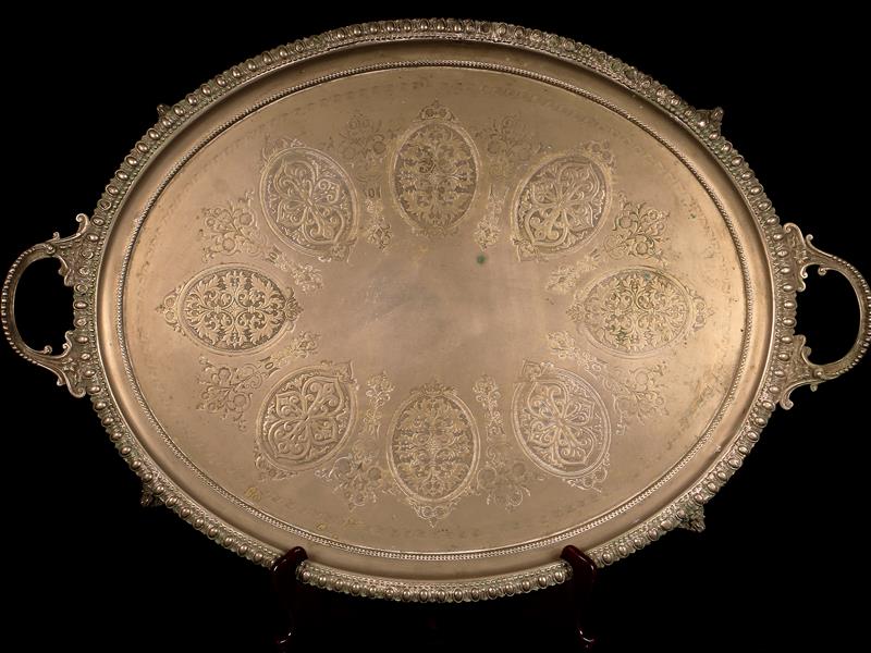 İNGİLİZ. E.PONG.S. HENRY CORNFORTH. İMALAT DAMGALI. OVAL FORMLU. KENARLARI KABARTMA ÇİÇEK DESENLERİ İLE MOTİFLİ. ÇAP 80 CM. SERİ : 1283