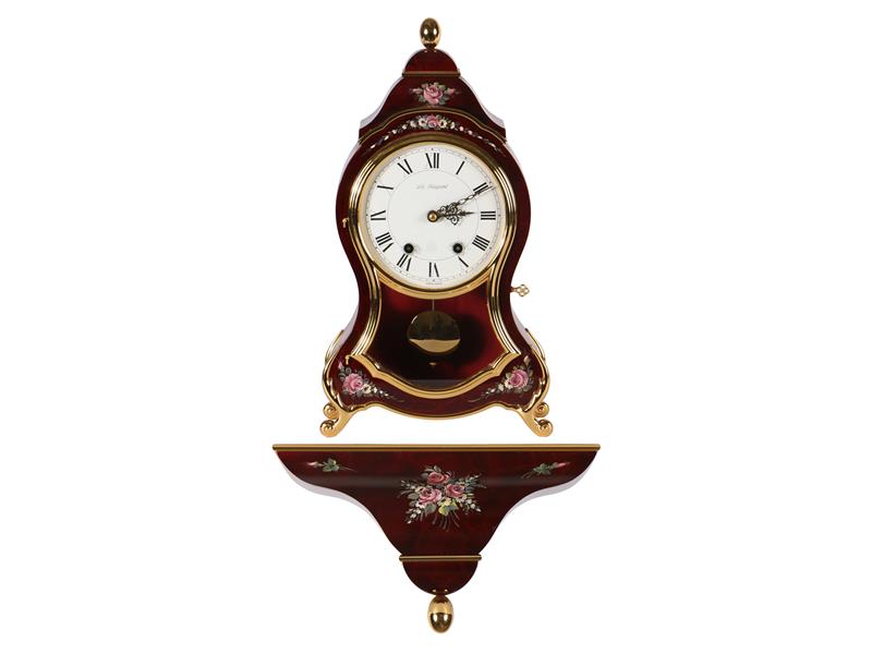 İSVİÇRE. LE REGENT. EMAYE KADRANLI. ROMEN RAKAMLI. TAM VE YARIMLARDA ÇALARLI VE KURMALI. ÇİÇEK MOTİFLERİ İLE EL DEKORLU. ÇALIŞIR DURUMDA. H 37 CM. KAİDE 23X12X10 CM.