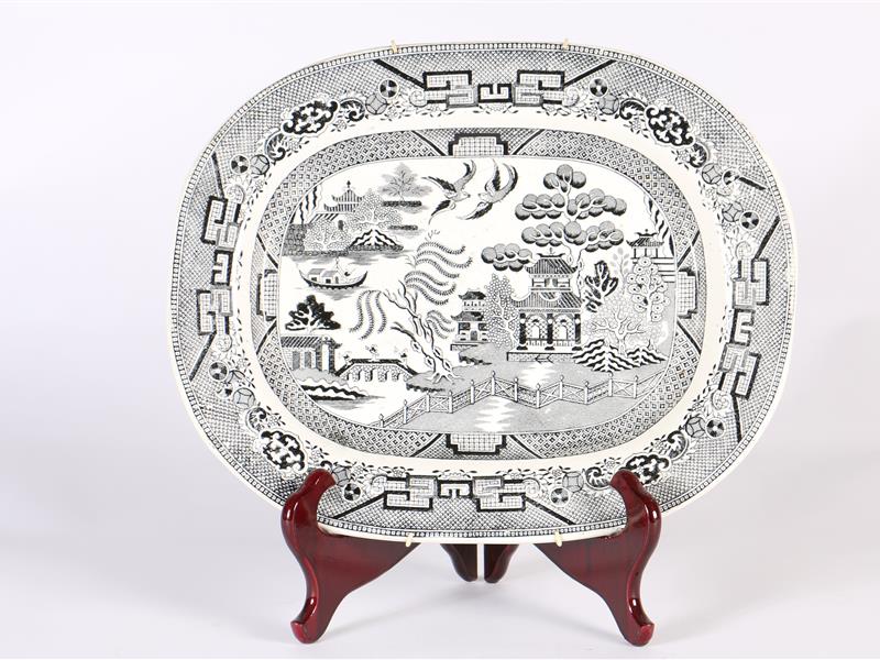 İNGİLİZ. WİLLOW LONGTON CHİNA İMALAT DAMGALI. OVAL FORMLU. TÜM YÜZEY UZAKDOĞU MOTİFLERLE DEKORLU. 29X36,5 CM.