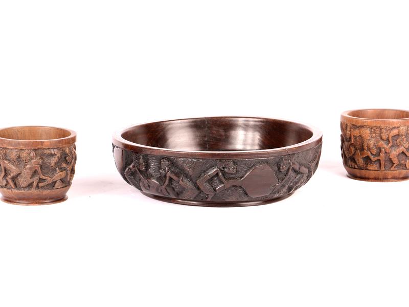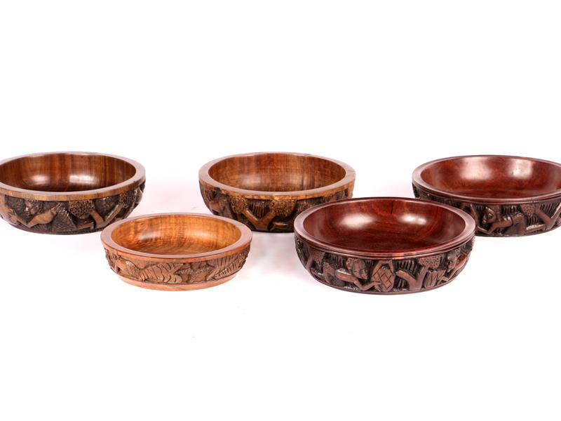 20. YY. AFRİKA ETNİK SANATI. KAZIMA VE OYMA İŞÇİLİKLİ. KASELERDEN 2 ADEDİ ABANOZDAN MAMÜL. ÇAP 17-19-20 CM.