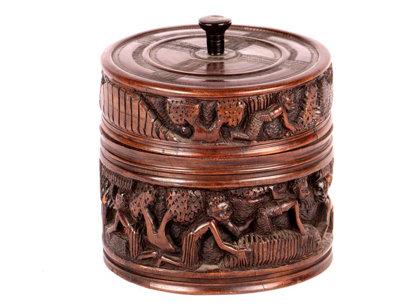 20. YY. AFRİKA ETNİK SANATI. KAZIMA VE OYMA İŞÇİLİKLİ. ABANOZDAN MAMÜL. H 20 CM. ÇAP 18 CM.