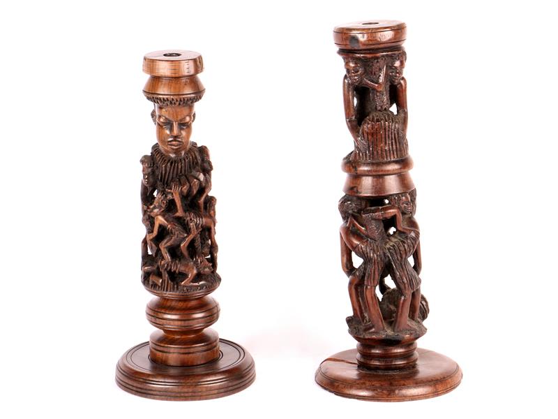 20. YY. AFRİKA ETNİK SANATI. KAZIMA VE OYMA İŞÇİLİKLİ. YUVARLAK KAİDEYE MONTELİ. MAKONDE AİLESİ. H 32 - 34 CM.