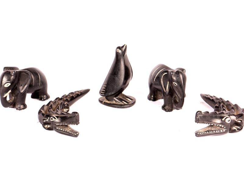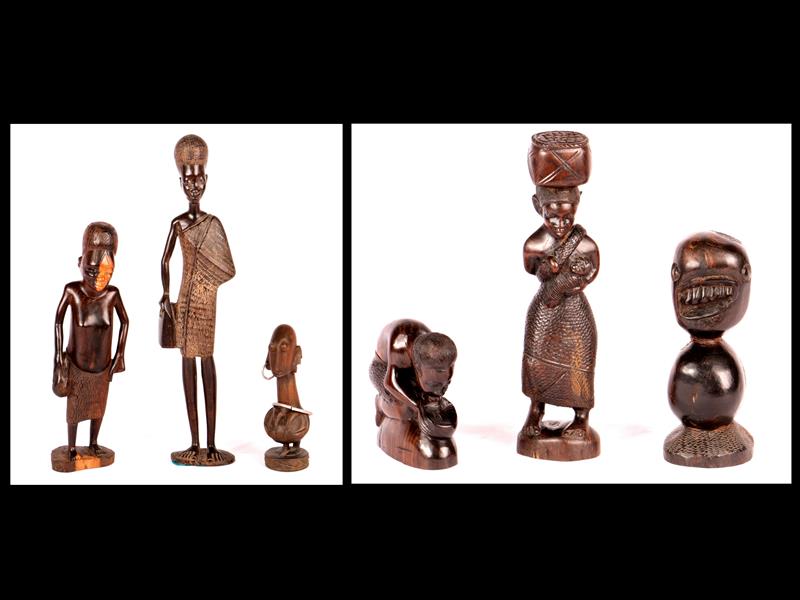 20. YY. AFRİKA ETNİK SANATI. KAZIMA VE OYMA İŞÇİLİKLİ. 5 ADEDİ ABANOZDAN MAMÜL. H 12-34 CM.