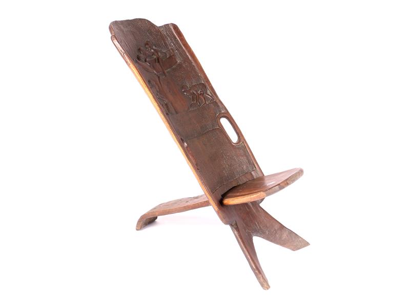 20 YY. AFRİKA ETNİK SANATI. KAZIMA VE OYMA İŞÇİLİKLİ. ABANOZDAN MAMÜL. SIRT KISMI MUHTELİF FİGÜRLERLE DEKORLU. GEÇMELİ İKİ PARÇALI. 110X38X73 CM.