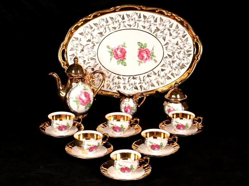 ALMAN. BAVARİA. WİNTERLİNG SCHWARZENBACH. İMALAT DAMGALI. YOĞUN ALTIN SIVAMA. DEMLİK, SÜTLÜK, ŞEKERLİK, 6 FİNCAN, 6 TABAĞI VE TEPSİ.