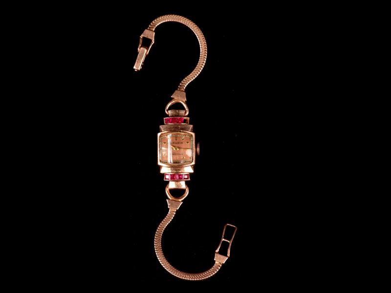 AMERİKAN. CİRCA 1942.GRUEN PRECİSİON MARKA. 14K ALTIN DAMGALI. SAAT ÇEVRESİ KALİBRE YAKUT TAŞLAR İLE ÇEVRİLİ. TAKRİBİ YAKUT 0.14 CT. TOPLAM AĞIRLIK 16 GR.