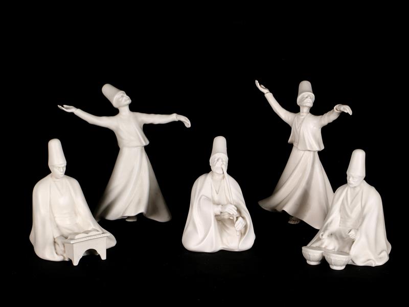 SÜMERBANK İMALAT DAMGALI. MEVLEVİ MÜZİSYENLER VE SEMAZENLER. H 13-18 CM.