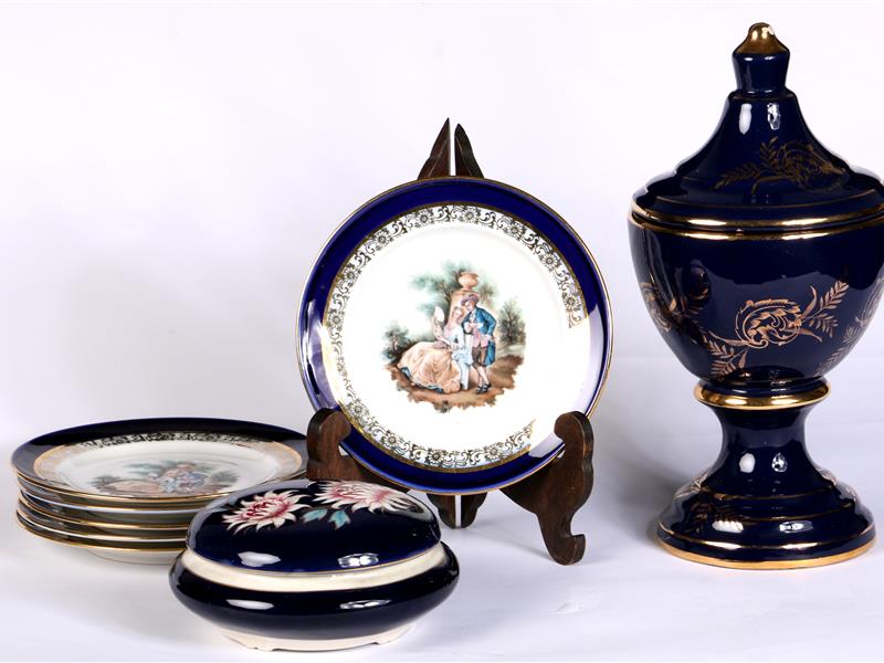 ALMAN. BAVARİA. HUTSCHENREUTHER SELB İMALAT DAMGALI. FİGÜRLERLE DEKORLU 6 ADET TABAK. ÇAP 15 CM. POLONYA. CHODZIEZ İMALAT DAMGALI KAPAKLI PORSELEN KUTU. ÇAP 11 CM. KOBALT RENKLİ, KAPAKLI PORSELEN VAZO. H 25 CM. ÇAP 12,5 CM.
