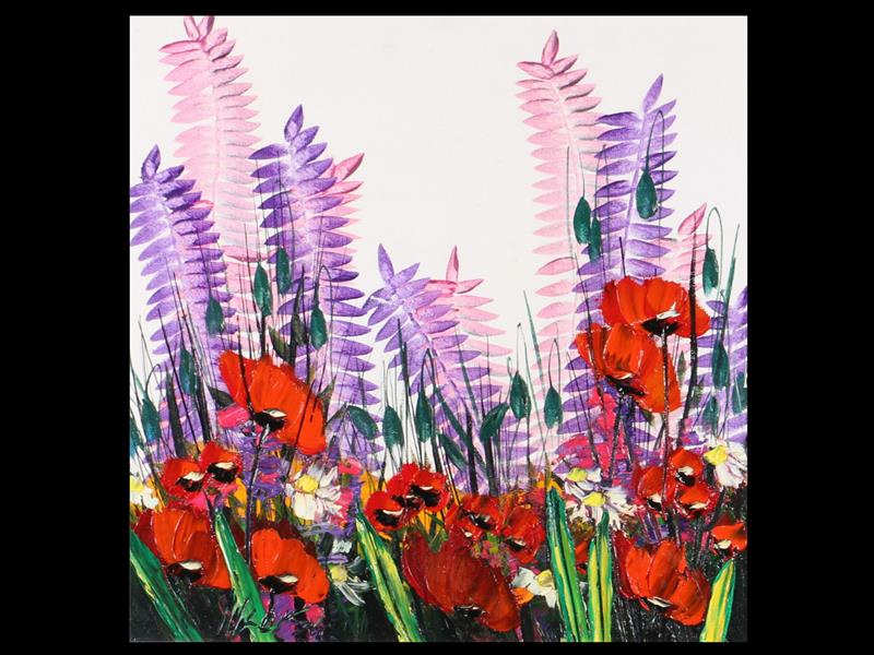 ÇİÇEKLER. TUAL ÜZERİ YAĞLIBOYA. İMZALI. 50X50 CM.