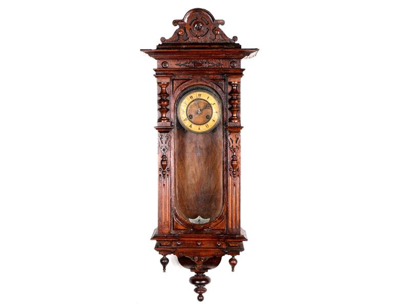 ROMEN RAKAMLI, EMAYE KADRANLI. TAM VE YARIMLARDA ÇALAR. KURMA ANAHTARI MEVCUT. 70X17X35 CM.