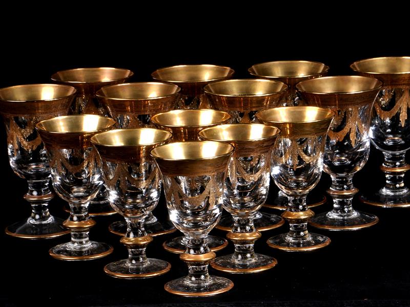 İMALAT DAMGALI. 11 PARÇA. YOĞUN ALTIN SIVAMA. MUHTELİF FİGÜRLERLE DEKORLU.