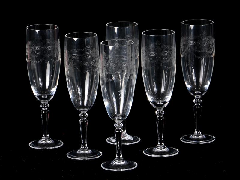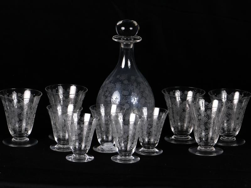 FRANSIZ. BACCARA İMALAT DAMGALI. 10 ADET KADEH VE 1 ADET KARAF. GRAVE İŞÇİLİKLİ. KARAF H 24 CM. KADEH 8-10 CM.
