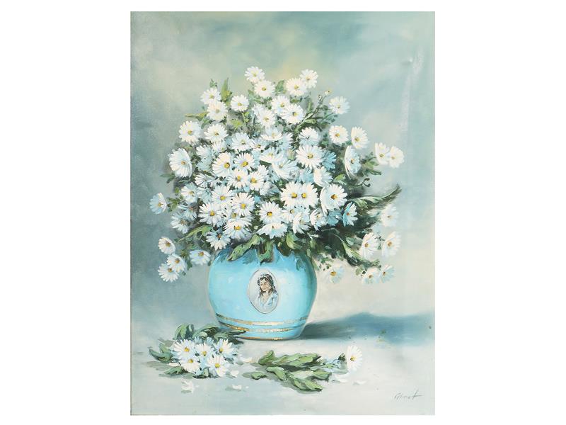 VAZODA ÇİÇEKLER. TUAL ÜZERİ YAĞLIBOYA. AHMET İMZALI. 80X60 CM.