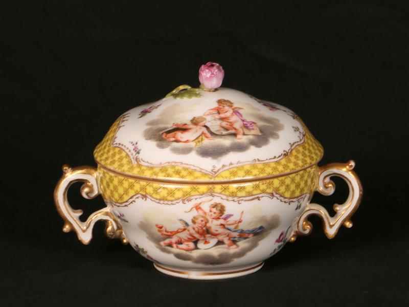 İMALAT DAMGALI. GÖVDE VE KAPAK ÜZERİ MELEK VE RENKLİ ÇİÇEKLERLE ALTIN YALDIZ EL DEKORLU. ÇİFT TUTAMAKLI. KAPAK TUTAMAĞI GÜL FORMLU. H 10 CM. ÇAP 10,5 CM.