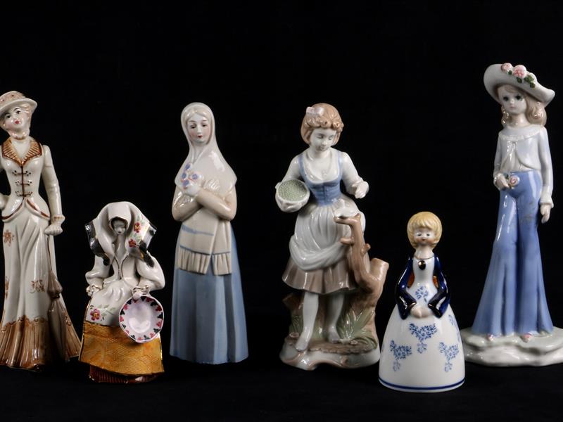 MUHTELİF RENKLİ VE FORMLU GENÇ KIZ FİGÜRLERİ. 1 ADETİ MİNİ ÇAN İŞLEVLİ. FİGÜRLER. H 13-25 CM.