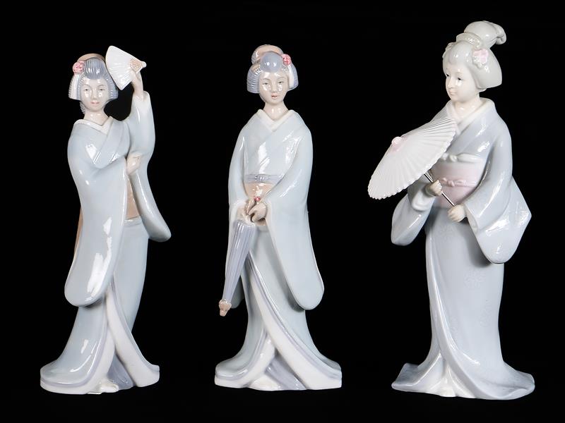 PASTEL RENKLİ, MUHTELİF FORMLU UZAK DOĞU FİGÜRLERİ. H 22-25 CM.