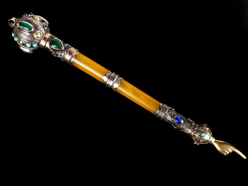 GÜMÜŞ KAPLAMA. YARI DEĞERLİ TAŞLARLA BEZELİ. UZ. 25 CM.