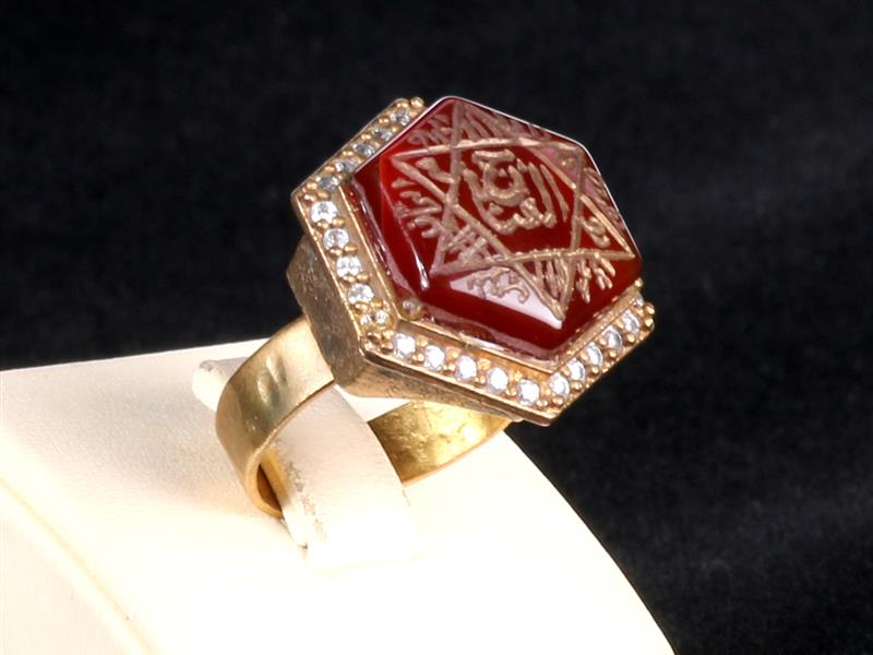 AKİK TAŞ ÜZERİ MÜHRÜ SÜLEYMAN MOTİFLİ VE ESMAÜL HÜSNA YAZILI.