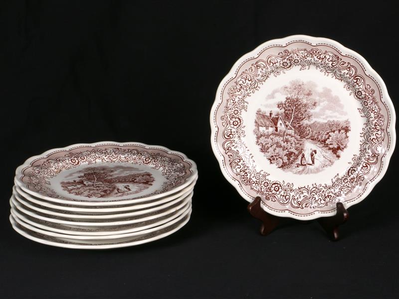 İTALYAN. DİSHWASHER PROOF İMALAT DAMGALI. TABAK İÇİ MUHTELİF PEYZAJLARLA DEKORLU. ÇAP 24-25,5 CM.