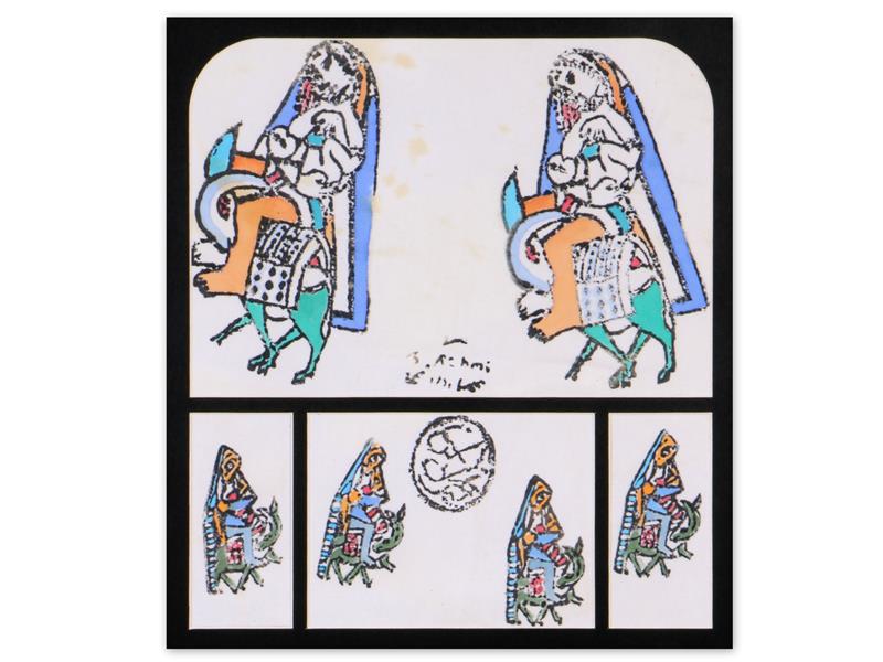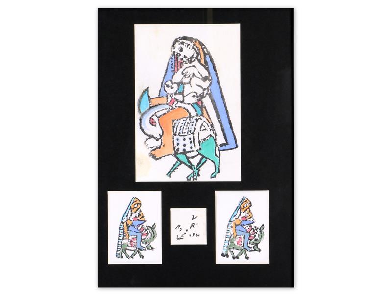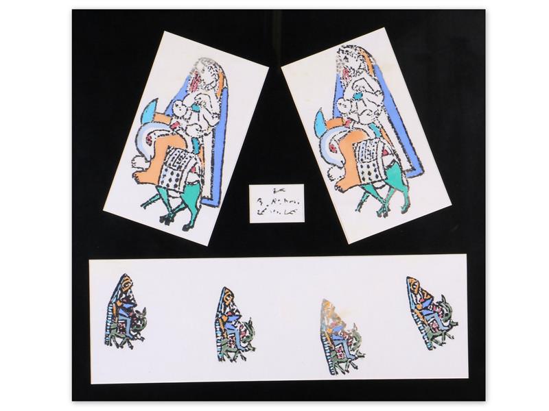 ANNE VE ÇOCUĞU. BEZ ÜZERİ AHŞAP KALIP BASKI. 1991 T. 1 ADET 25X36,5 CM. 1 ADET 15X20 CM. 2 ADET 7X15 CM.