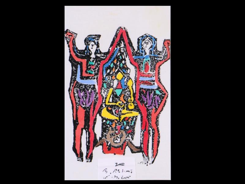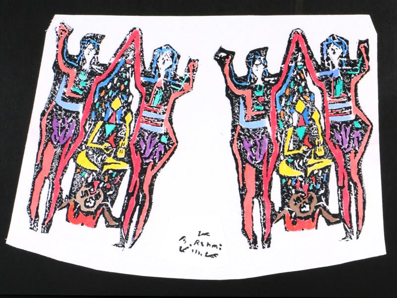 HORON OYNAYANLAR. BEZ ÜZERİ AHŞAP KALIP BASKI. 1991 T. 43X57 CM.