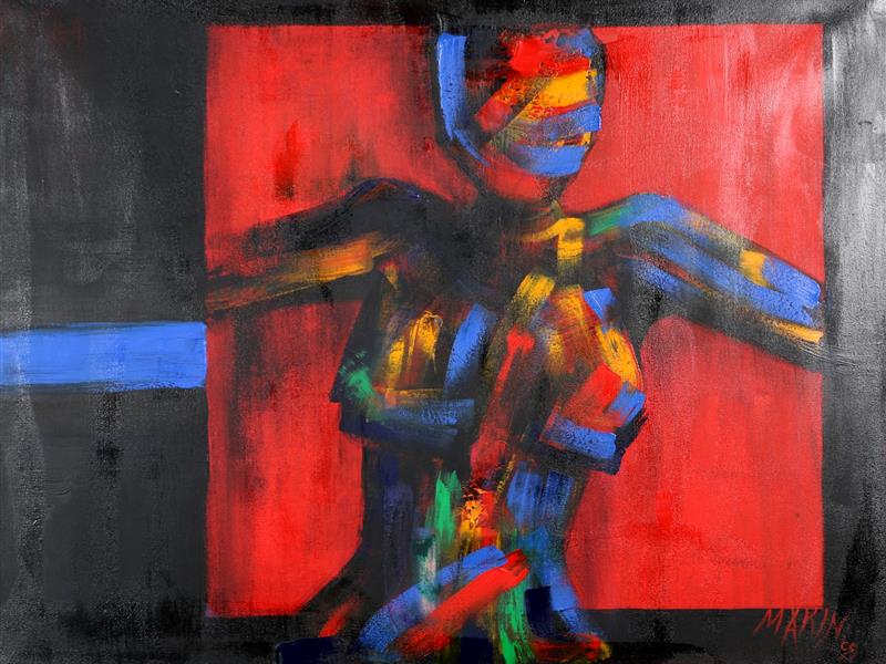 KOMPOZİSYON. TUAL ÜZERİ YAĞLIBOYA. İMZALI. 1999 T. 90X117 CM.