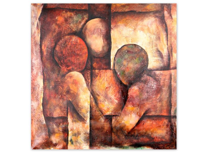 KOMPOZİSYON. TUAL ÜZERİ YAĞLIBOYA. İMZALI. 2003 T. 100X100 CM.