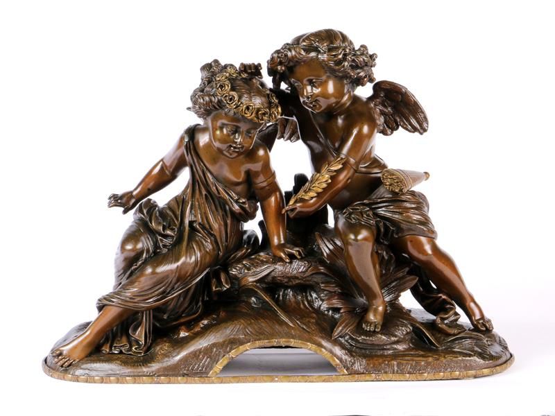 FRANSIZ. KAYA ÜZERİNDE OTURAN CUPİDLER. 36X11X27 CM.