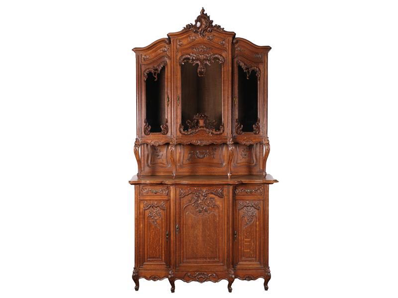 BATI AVRUPA. BAROK TARZI. MASİF MEŞE. 2 PARÇA. ÜST KISIM 3 CAM KAPAKLI, 4 AHŞAP RAFLI.KAPAK ÜZERLERİ ZARİF KABARTMA DESENLERLE DEKORLU. ALT KISIM 3 AHŞAP KAPAKLI, 2 ÇEKMECELİ. 3 RAFLI. KAPAK ÜZERLERİ ZARİF KABARTMA DESENLERLE DEKORLU. ÜST KISIM 135X162X36 CM. ALT KISIM 147X109X60 CM.