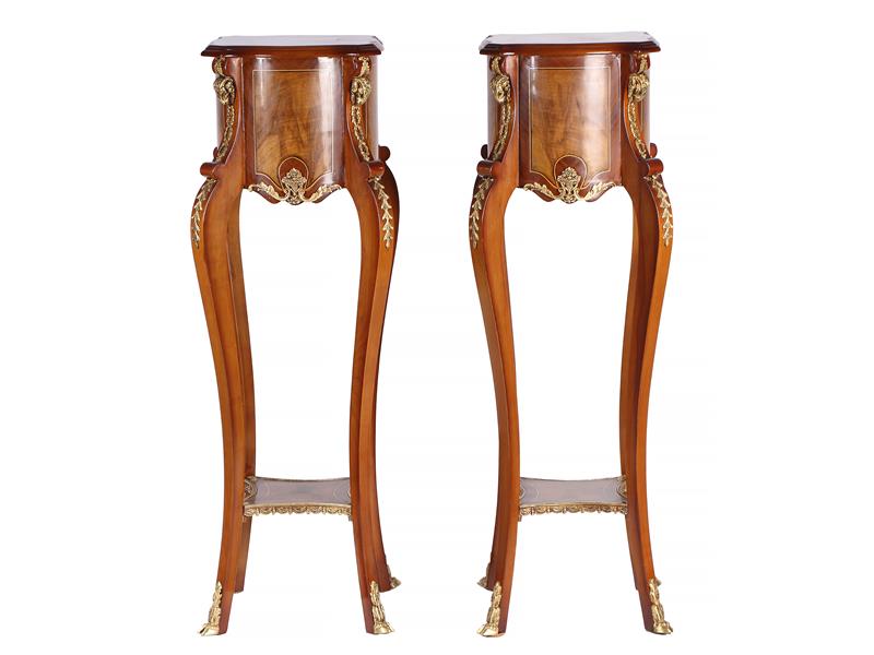 FRANSIZ. 4 AYAK ORTADAN BAĞLANTILI. BOMBELİ GÖVDE MARKÖTERİ İŞÇİLİKLİ, MUHTELİF STİLİZE MOTİFLERLE DEKORLU. TABLA 36X36 CM. H 117 CM.