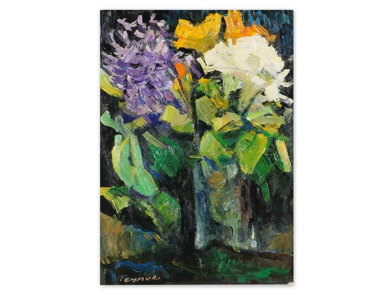 GÜRCÜ. ÇİÇEKLER. TUAL ÜZERİ YAĞLIBOYA. İMZALI. 35X24 CM.