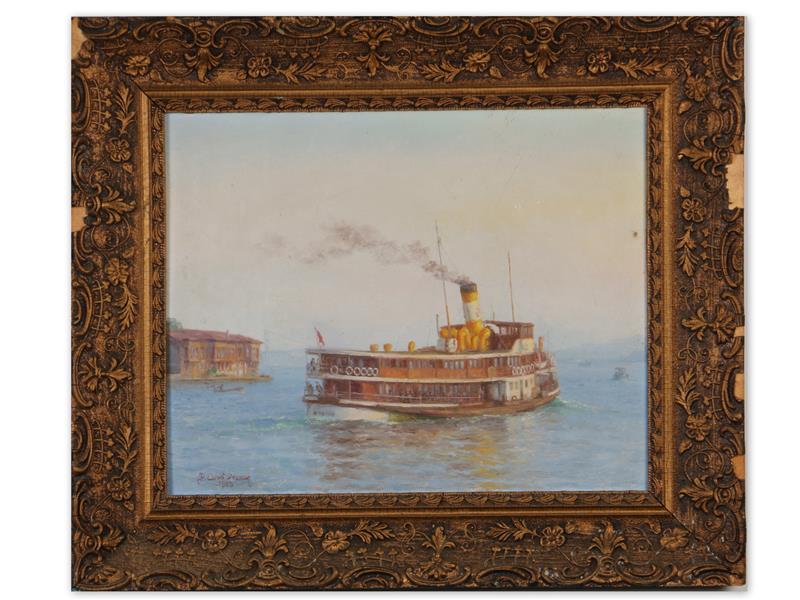 VAPUR. DURALİT ÜZERİ TUAL MARUFLE YAĞLIBOYA. İMZALI. 1989 T. 40X50 CM. ORİJİNAL ÇERÇEVELİ