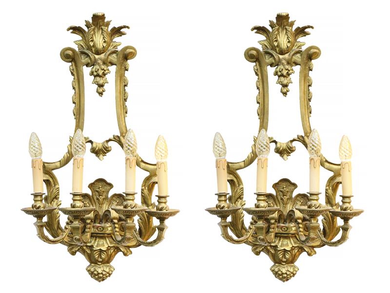 FRANSIZ. 19-20 YY. BRONZ DÖKÜMÜN KABARTMA İŞÇİLİĞİ İLE BÜTÜNLEŞEN KIVRIK 4 KOLLU VE 4 LAMBALI. UZ 70 CM.